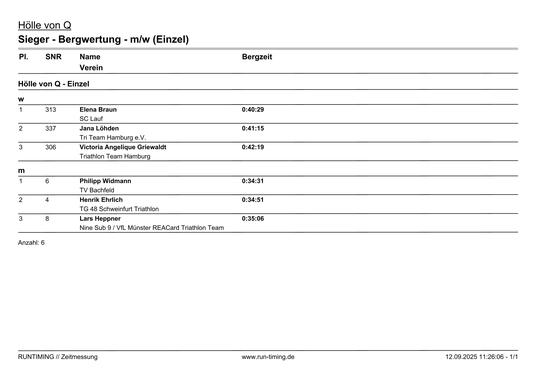 6. Hölle von Q, 4.9.2022: Neuer Streckenrekord bei den Frauen, erfolgreiche Titelverteidigung bei den Männern.
