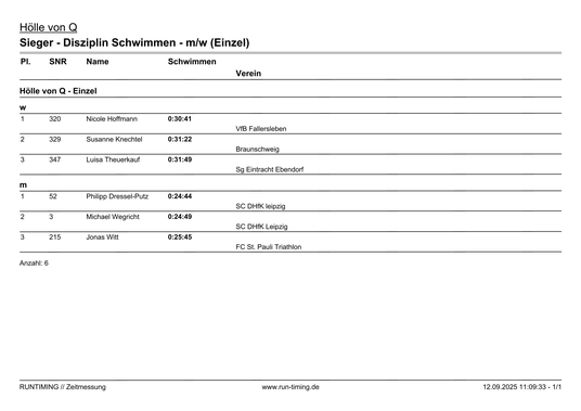 Schnellste Schwimmerin Einzel Nicole Hoffmann 0:32:24 Nr. 325